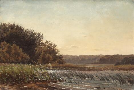 Godfred Christensen: View of Farum Lake. Signed and dated G. C. 1862. Oil on canvas laid on cardboard. 24 x 35 cm.
