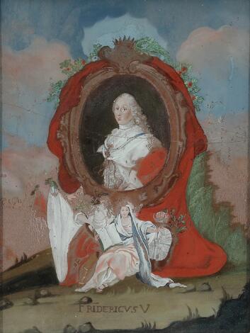 Danish painer, 18th century: Portrait of King Frederik V (1723-1766). Unsigned. Reverse oil painting. Visible size 24.5 x 18.5 cm.