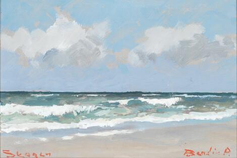 Hans Bendix Pedersen: View from Skagen. Signed Bendix P. Skagen. Oil on board. 15 x 22 cm.