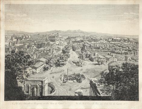 Joseph Thürmer: "Nord-Westliche Uebersicht von Rom, genommen von dem Thurme des Capitols", 1824. Etching. Visible size 56 x 73 cm.