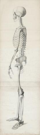Artist unknown, 19th century: A skeleton. Litograf. Unsigned. Inscribed. Visible size 168.5 x 50.5 cm.