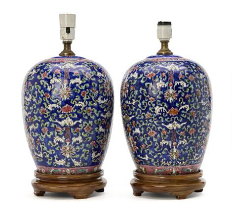A pair of Chinese 20th century enamelled porcelain lamps. H. excl. the mounts 27 cm. (2)