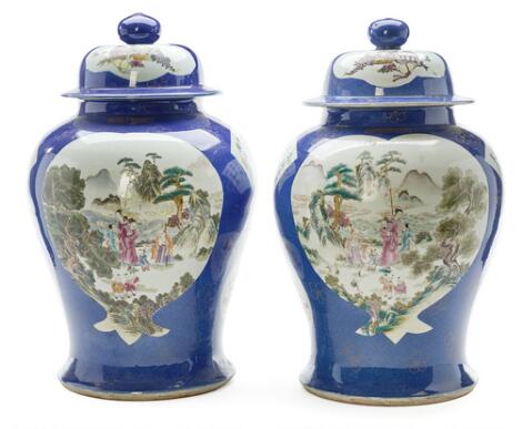 A pair of Chinese powderblue porcelain jars and covers. H. 60 cm. (2)