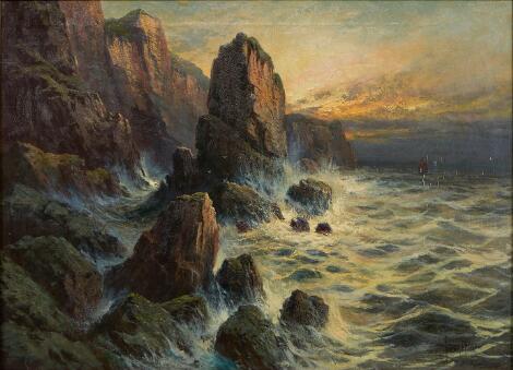 Frank Hider: Waves breaking at a coast. Signed Frank Hider. Oil on canvas. 73 x 99.5 cm.