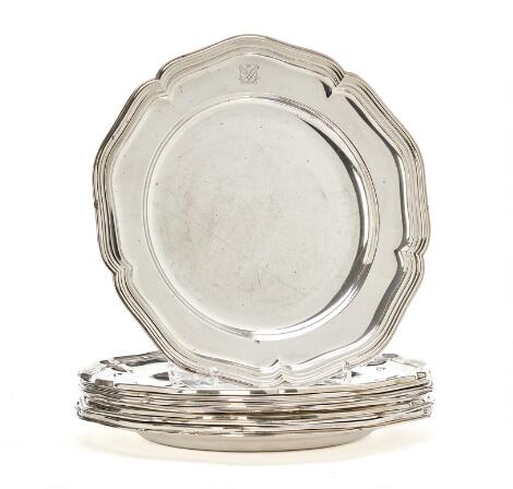 Nine Regence style silver plates. Various makers, first half-20th century. Weight 4,256 g. Diam. 25.5 cm. (9)