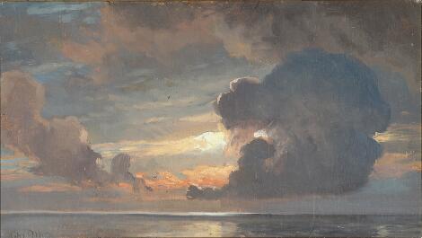 Christian Mølsted: Sunset over the ocean. Signed Chr. M. Oil on canvas laid on canvas. 27 x 45 cm.