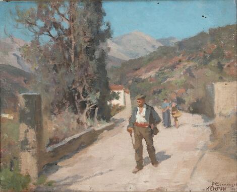 Erik Henningsen: A view from Menton on a sunny day. Signed and dated Erik Henningsen Menton 1922. Oil on canvas. 24.5 x 30 cm.