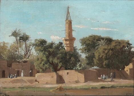 A. Riis Carstensen: A view from the bank of the Nile. Signed A.C.R.C. Oil on canvas laid on cardboard. 17 x 23.5 cm.
