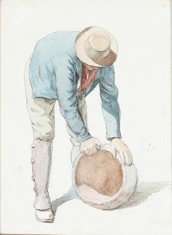 Carl Thomsen: Italian farmer. Unsigned. Dated Rom 14/6 76. Drawing ink and gouache on paper. Visible size 21 x 15.5 cm.
