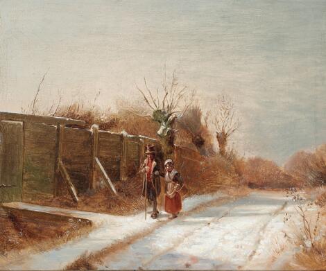 Frederik Rohde: Winter day. Signed Fr. Rohde on the stretcher. Oil on canvas. 26.5 x 31 cm.