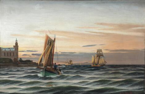Christian Eckardt: Seascape with sailing ships. Signed C. Eckardt. Oil on canvas. 71 x 108 cm.