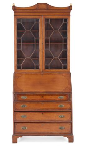 An English mahogany bureau, the upper part with glass doors. Early 20th century. H. 226 cm. W. 98 cm. D. 52 cm.
