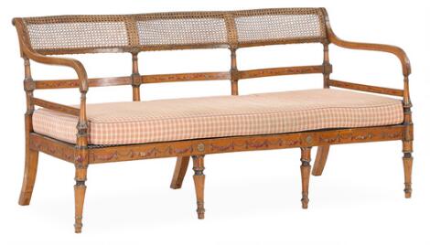 A three-seater sofa in Sheraton style. England, 19th century. H. 75 cm. W. 150 cm. D. 63 cm.