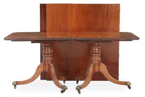 An English two-pillar table of mahogany with profiled edge. C. 1900. H. 70 cm. L. 164/210/264 cm. W. 107 cm.