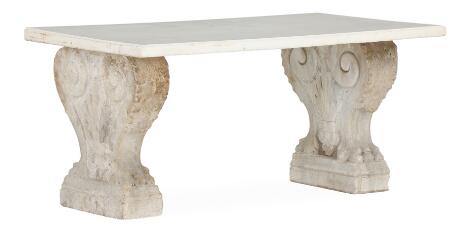Low italian marble console table. Top and consoles not originally cohesive. 18th/19th century. H. 42 cm. W. 90 cm. D. 50 cm.