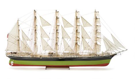 "Skoleskibet København" ship model of carved and painted wood. 20th century. H. 66 cm. L. 130 cm.