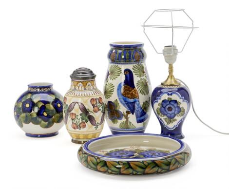 Aluminia collection of bowls, vases and lamps. H. excl. mounting 17-30 cm. Diam. 31 cm. (5)