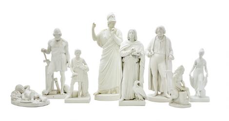 Bertel Thorvaldsen, after : Eight biscuit figures. The Royal Copenhagen Porcelain Factory and Bing & Grøndahl, 19th century. (8)
