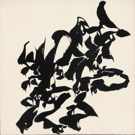 Christian Dotremont: Komposition. Usigneret. Tusch på papir. Bladstørrelse 40 x 40 cm.