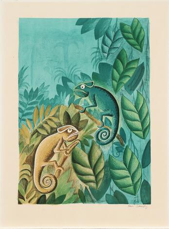 Hans Scherfig: “Livet i skoven”. Signeret Scherfig 1964. Litografi i farver. Bladstørrelse 70 x 52 cm. Uindrammet.