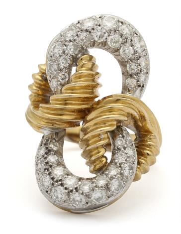A diamond ring set with numerous brilliant-cut diamonds, mounted in 18k gold and white gold. Size 58.
