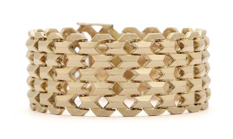 A wide bracelet of 14k gold. Weight app. 34.5 g. W. 2.5 cm. L. 17.5 cm.