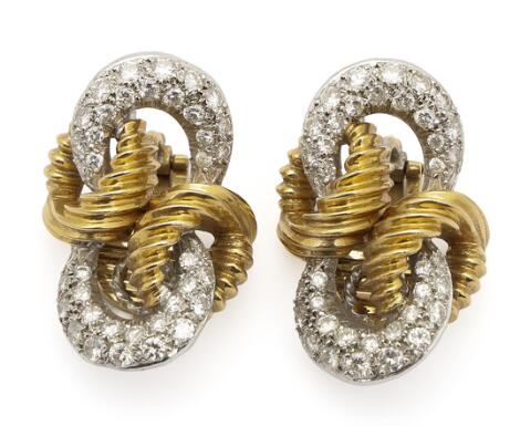 A pair of diamond ear clips each set with numerous brilliant-cut diamonds, mounted in 18k gold and white gold. (2)