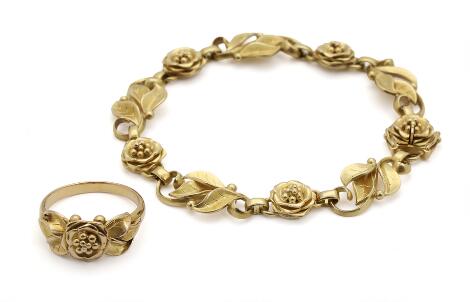 Georg Jensen: A jewellery set comprising a ring and bracelet of 18k gold. Size 54.5 and L. 18.4 cm. (2)
