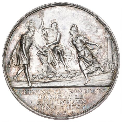 Christian VII, Kronprinsens hjælp til Københavns brandlidte, 1795, Loos, Ag, B 12, 36 mm, 13,65 g - smukt eksemplar