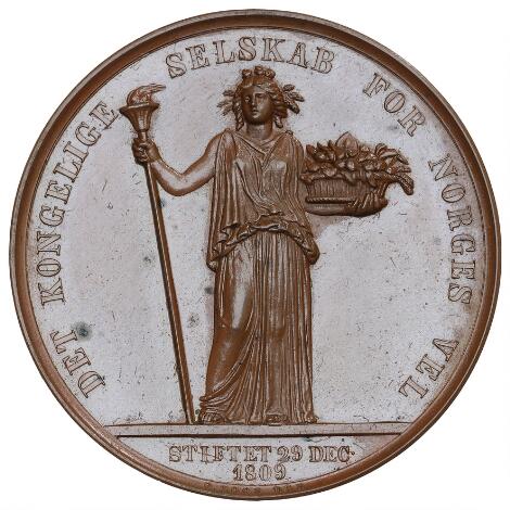 Frederik VI, Det kongelige selskab for Norges vel, 1809, Loos, 42 mm, bronze, 29,85 g, B 1141, plet
