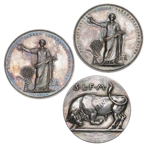 Christian IX, den almindelige danske landboforsamling, Aarhus 1866, Odense 1900, Sjælland-Lolland-Falsterske mejeriudstillinger u.år, i alt 3 stk.