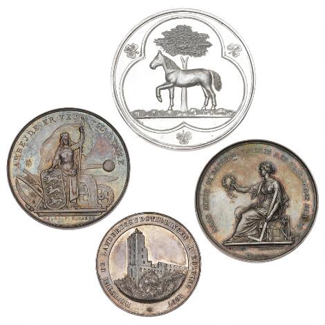 Christian IX, lille samling af medailler fra Industriudstillinger og håndværkerforeningen, i alt 4 stk