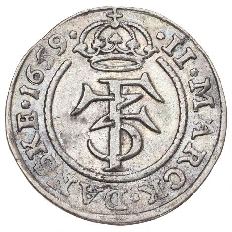 Frederik III, 2 mark 1659, H 94, Aagaard 133.2, lette ridser - pænt eksemplar af denne ualmindelige årstal