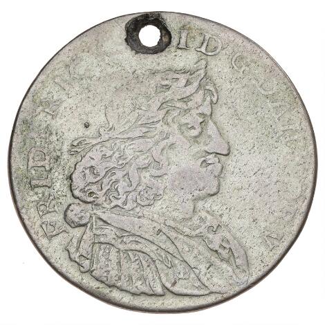 Frederik III, 2 mark / halvkrone 1666, H 107B, Aagaard 153.6, Sieg 36.3, perforeret - uhyre sjælden variant uden Gotfred Krügers initialer