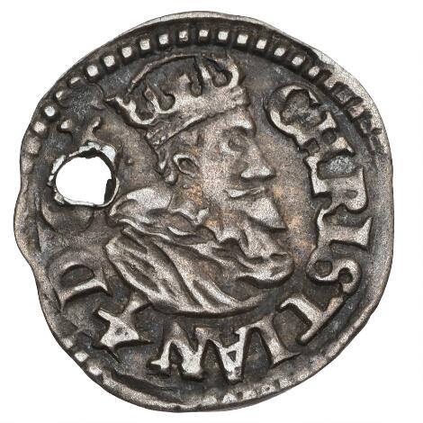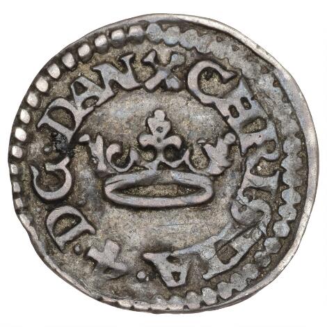 Christian IV, hvid u.år, H 102A, Sieg 8.1, S 149, 0,45 g, buklet, korroderet - ekstremt sjælden