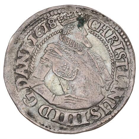 Christian IV, mark 1618, H 99C, plet - pænt eksemplar af dette ualmindelige årstal