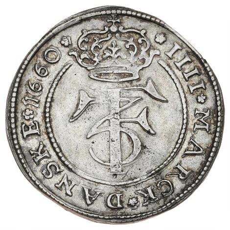 Frederik III, 4 mark / krone 1660, H 95A, Aagaard 72.6 - pænt eksemplar