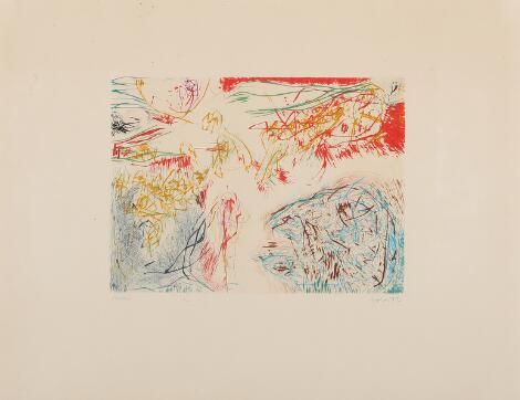 Asger Jorn: “Confrontation sans front”. Signeret. Radering i farver. Bladstørrelse 50 x 67 cm.