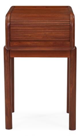 Magnus L. Stephensen: Lille skab af cubamahogni. Unika. Opsat på stel med runde ben. Top med jalousilukke, indvendigt med ruminddeling.
