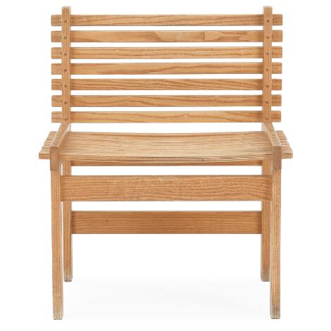 Gunnar Aagaard Andersen: “Lamel”. Sidestol af med sæde og ryg isat flerlags lameller af ask. Udført og brændemærket hos snedkermester Søren Horn.