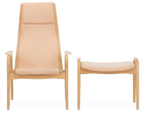 Yngve Ekström: "Lamino" Lænestol og skammel af bøg. Betrukket med lyst skind. (2)