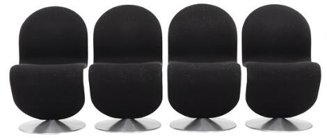 Verner Panton: “System 1–2-3” Sæt på fire stole med fod af metal. Sæde og ryg betrukket med sort uld. (4)