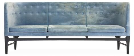 Arne Jacobsen: “Mayor”. Fritstående tre pers. sofa med stel af sortlakeret træ. Udført hos &Tradition.