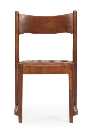 Hans J. Wegner: Stabelstol af eg, sæde med cognacfarvede flettede gjorde af skind. H. Knak Jensen.