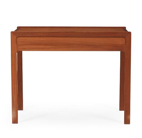 Helge Vestergaard Jensen: Sidebord af teak med skuffe. Jason Møbler. H. 54. B. 44. L. 70.
