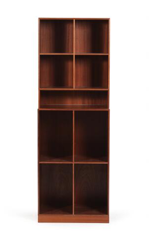 Mogens Koch: To bogkasser, sokkel samt mellemsokkel af massiv mahogni. H. 12,5/50,5/76. B. 50,5. D. 36/27,5. (4)