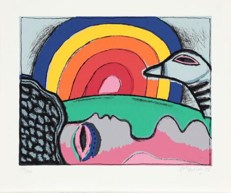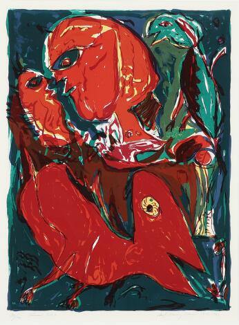 Carl-Henning Pedersen: “Himlens port”, 1982. Signeret Carl-Henning Pedersen, Paris 1982, 84/150. Litografi i farver. Lysmål 74 × 55 cm.