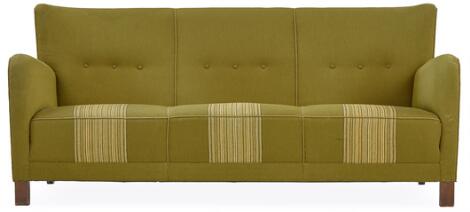Dansk snedkermester: Tre pers. sofa betrukket med ben af bejdset bøg. Betrukket med grøn uld.