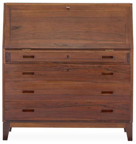Kaj Winding: Chatol af palisander. Front med nedklappelig skriveplade og fire skuffer. H. 105. B. 100. D. 45.
