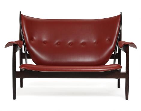 Finn Juhl: "Høvdingesofa". Fritstående to-personers sofa med stel af wengé. Betrukket med Indian red skind. L. 148.